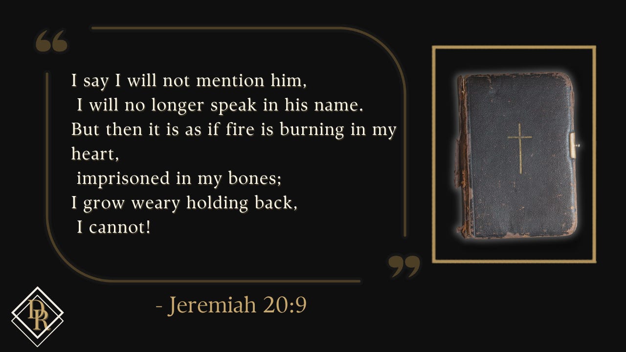 Sometimes I feel like I should stop writing and producing content and just keep my faith to myself, but then I experience God’s love so profoundly in the sacraments, I end up finding myself back at my laptop researching and writing another piece. I feel like Jeremiah, when he said,