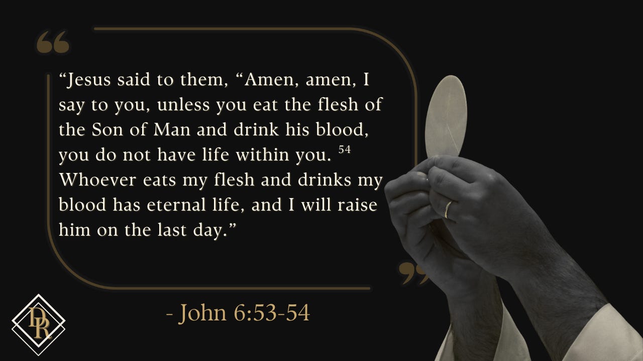 The Eucharist is the fulfillment of the Old Covenant, but it is also the fulfillment of a Protestant’s desire to be united to the Word. God’s Word never fails, and we can be united to it intellectually and spiritually through study, but you cannot experience it physically the way that God intended you to without the Mass. It is here that man finds his salvation resting on the altar and presented to his lips like the hot coal that was pressed to the unclean lips of Isaiah. Jesus’ words in John six are the fulfillment of Ezekiel and Isaiah when He said,